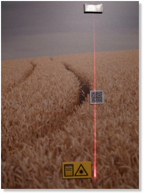 aufmerksam, nicht in den Laserstrahl zu blicken.