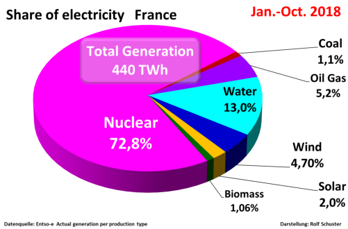 Kohle, Öl und Gas. Kernenergie hat in Länder wie Frankreich und Finnland einen hohen Anteil daran.