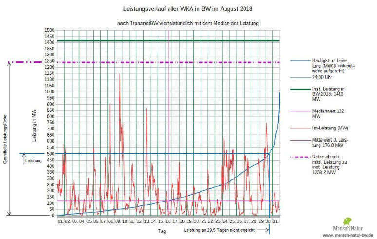 abgerufen werden könnte, bleiben für den Monat August im Mittel nur lächerliche 122 MW aus der Windausbeute übrig.