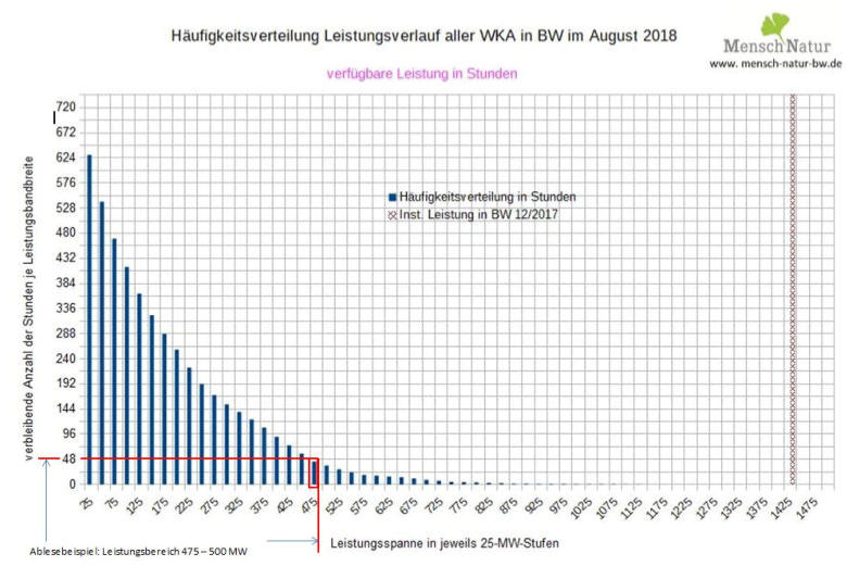 25 MW-Stufen). Dann summiert man die Zeiträume, in denen die Leistung eines Bereichs eingespeist wurde. Die Werte und