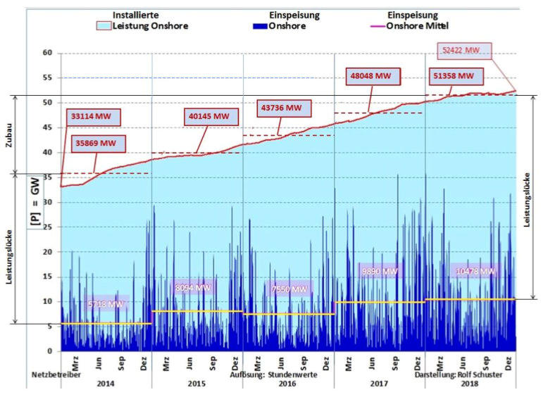 Von Anfang 2014 bis Ende 2018 hatten wir in Deutschland einen Zubau von 33.114 MW auf 52.422 MW an Windgeneratoren-