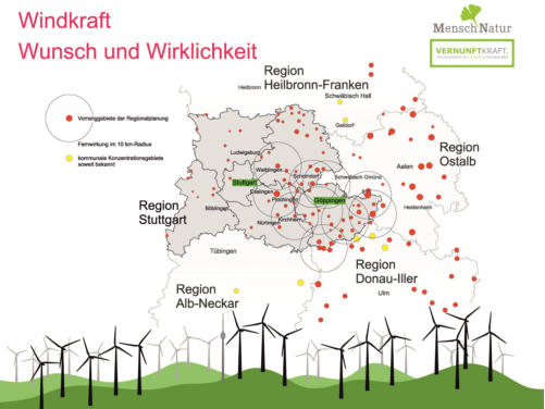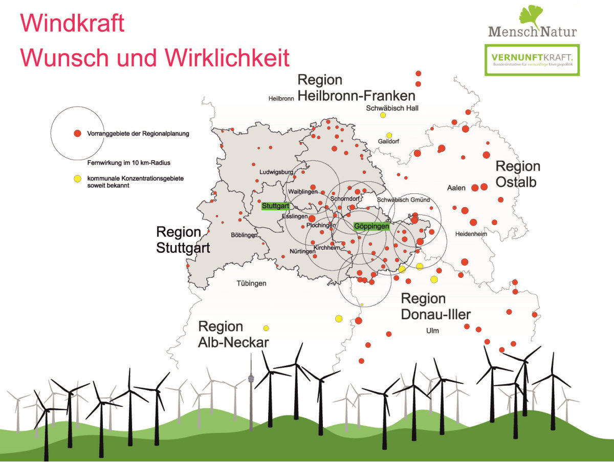 der Region Stuttgart geht in einem dicht besiedelten Gebiet von 86 Vorranggebieten aus, die Platz bieten für bis zu 500 gigantische